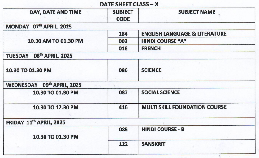 According to the official notification issued on Wednesday, April 2, 2025, the Class 10 examinations will take place from April 7 to April 11, 2025. In contrast, the Class 12 examination is scheduled for April 11, 2025.