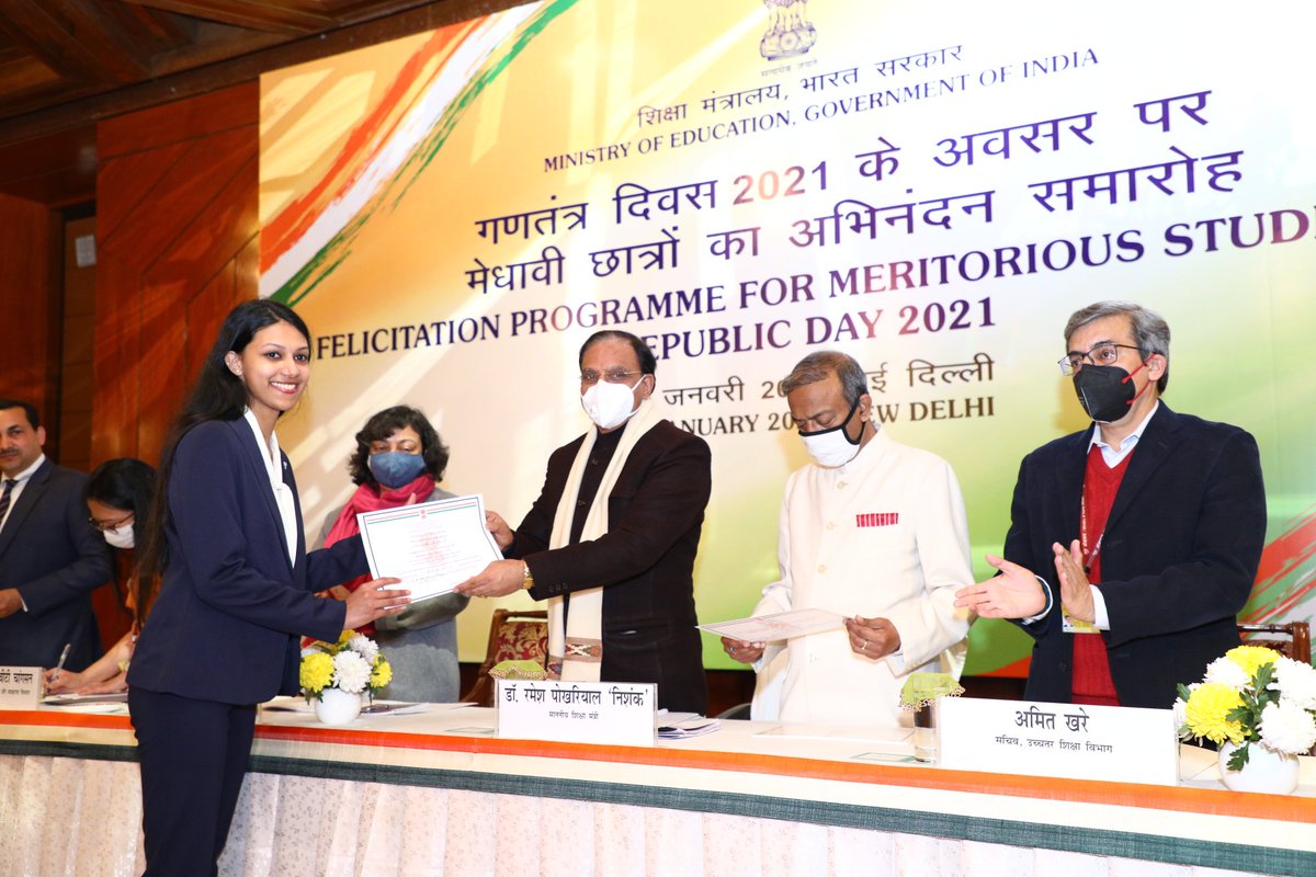 On the occasion of the 72nd Republic Day, Education Minister Ramesh Pokhriyal felicitated meritorious students with a certificate of appreciation. Addressing the students, the minister said that the youth are the country’s future and will become the cornerstone for building the golden-period for India.