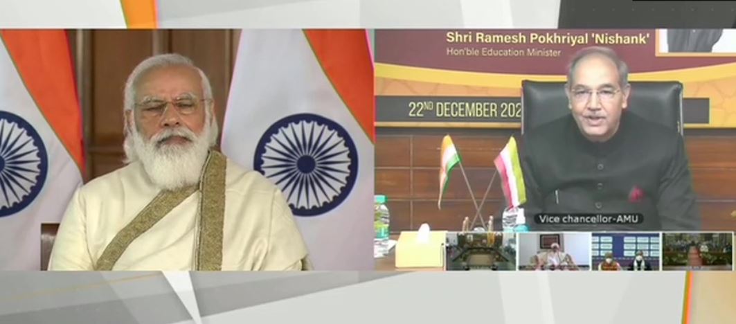Prime Minister Narendra Modi today addressed the centenary celebrations of Aligarh Muslim University (AMU) via video conferencing. He hailed the contribution of AMU in nation-building and in elevating India's position among Islamic countries during the 100 years of its existence. AMU Chancellor Syedna Mufaddal Saifuddin & Union Education Minister Ramesh Pokhriyal Nishank were also present on the occasion.