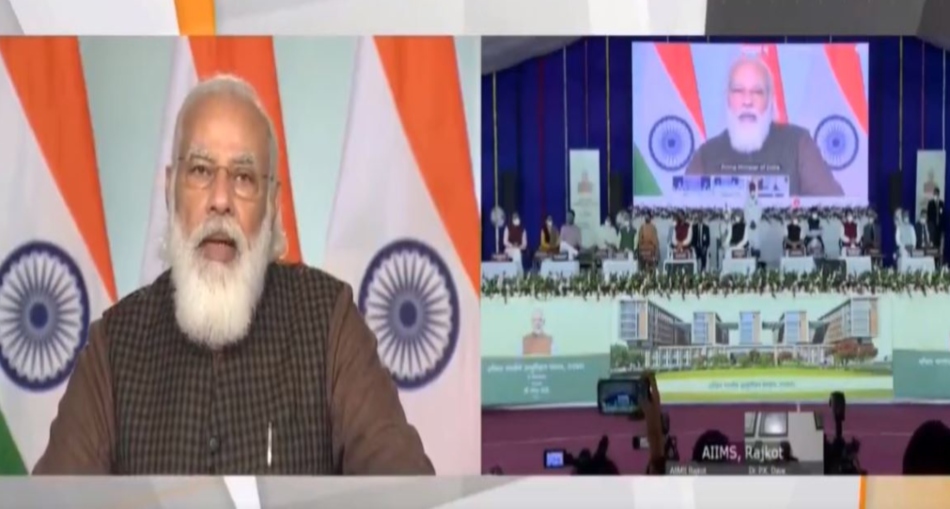 Prime Minister Narendra Modi today laid the foundation stone of the All India Institute of Medical Sciences (AIIMS) at Rajkot in Gujarat through video conferencing.