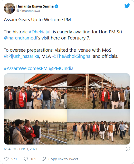 “On February 7, PM Narendra Modi will visit Dhekiajuli to lay the foundation of two medical colleges in Biswanath Charali and Charaideo. He will also inaugurate state government’s road project ‘Assam Mala’,” said Assam Minister Himanta Biswa Sarma, ANI reports.