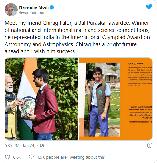 Pune boy Chirag Falor topped the JEE Advanced 2020. He scored 352 marks out of 396 marks. Chirag was earlier congratulated by PM Modi when he received the Bal Puraskar award.
